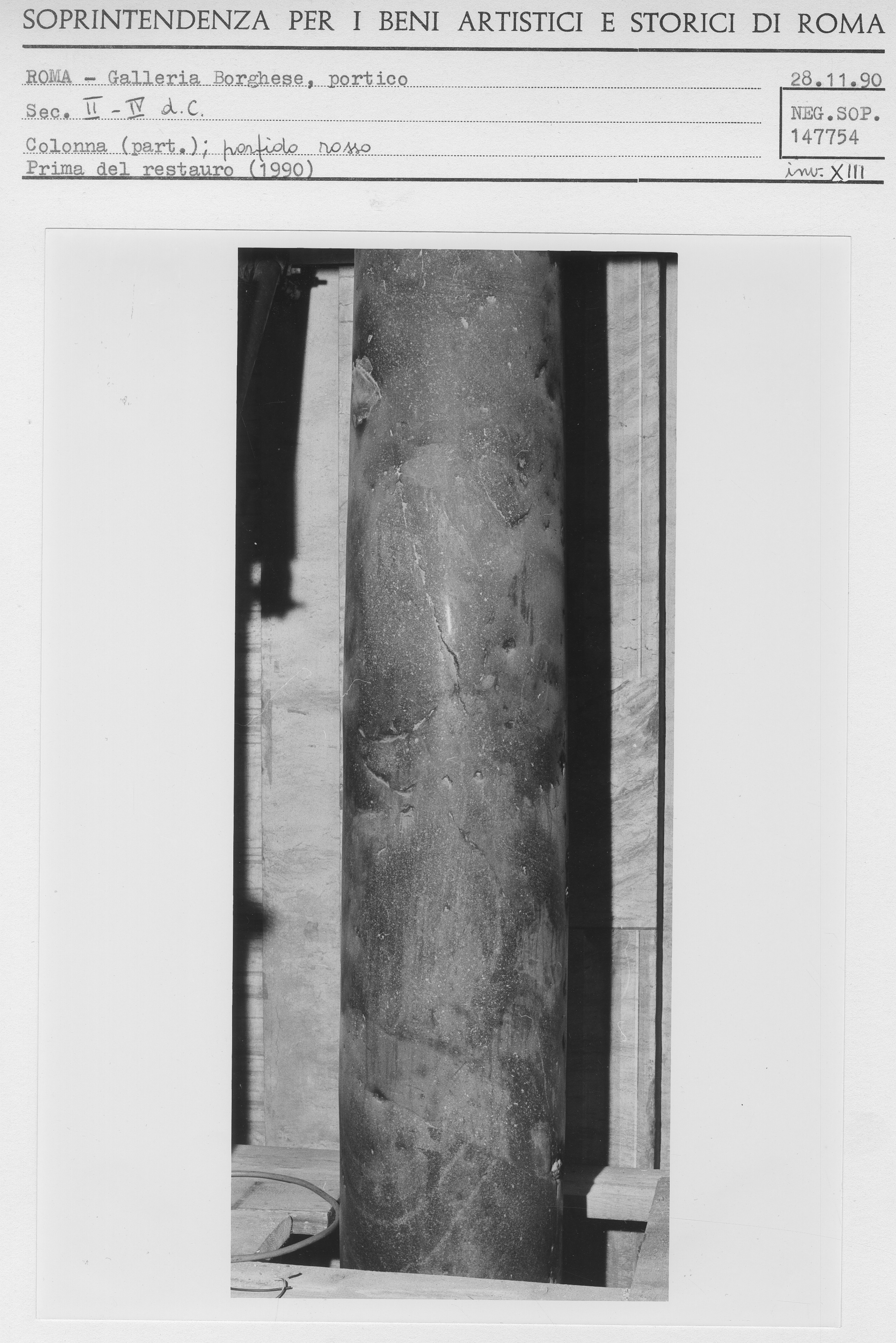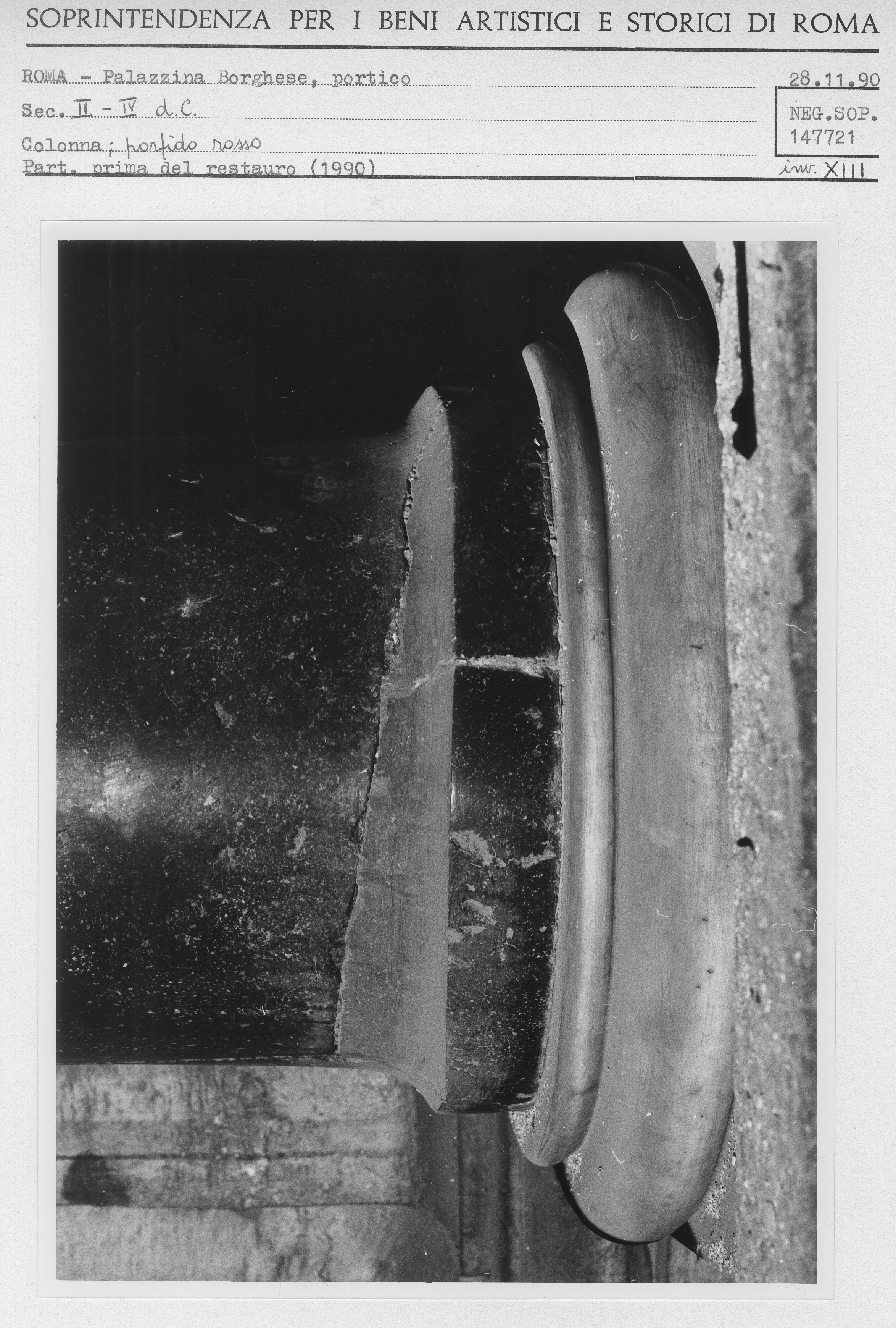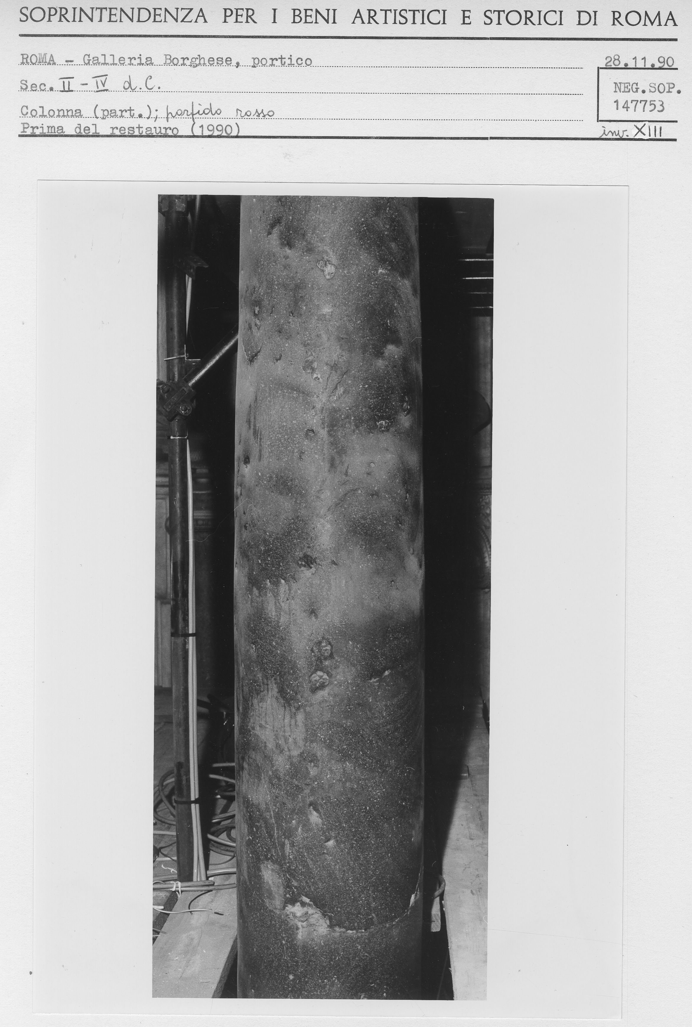 colonna - Colonna di porfido con base e capitello di marmo bianco 1990 Inventario XIIIa vedi scheda opera vedi le foto di restauro in sequenza di quest'opera |