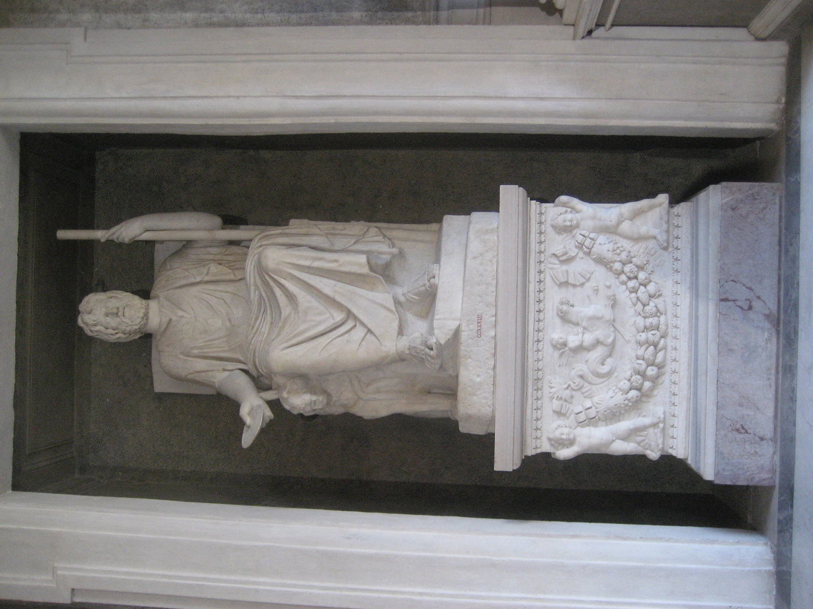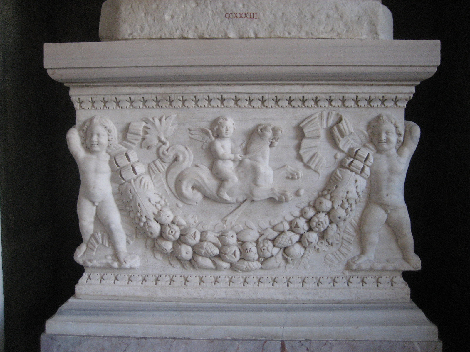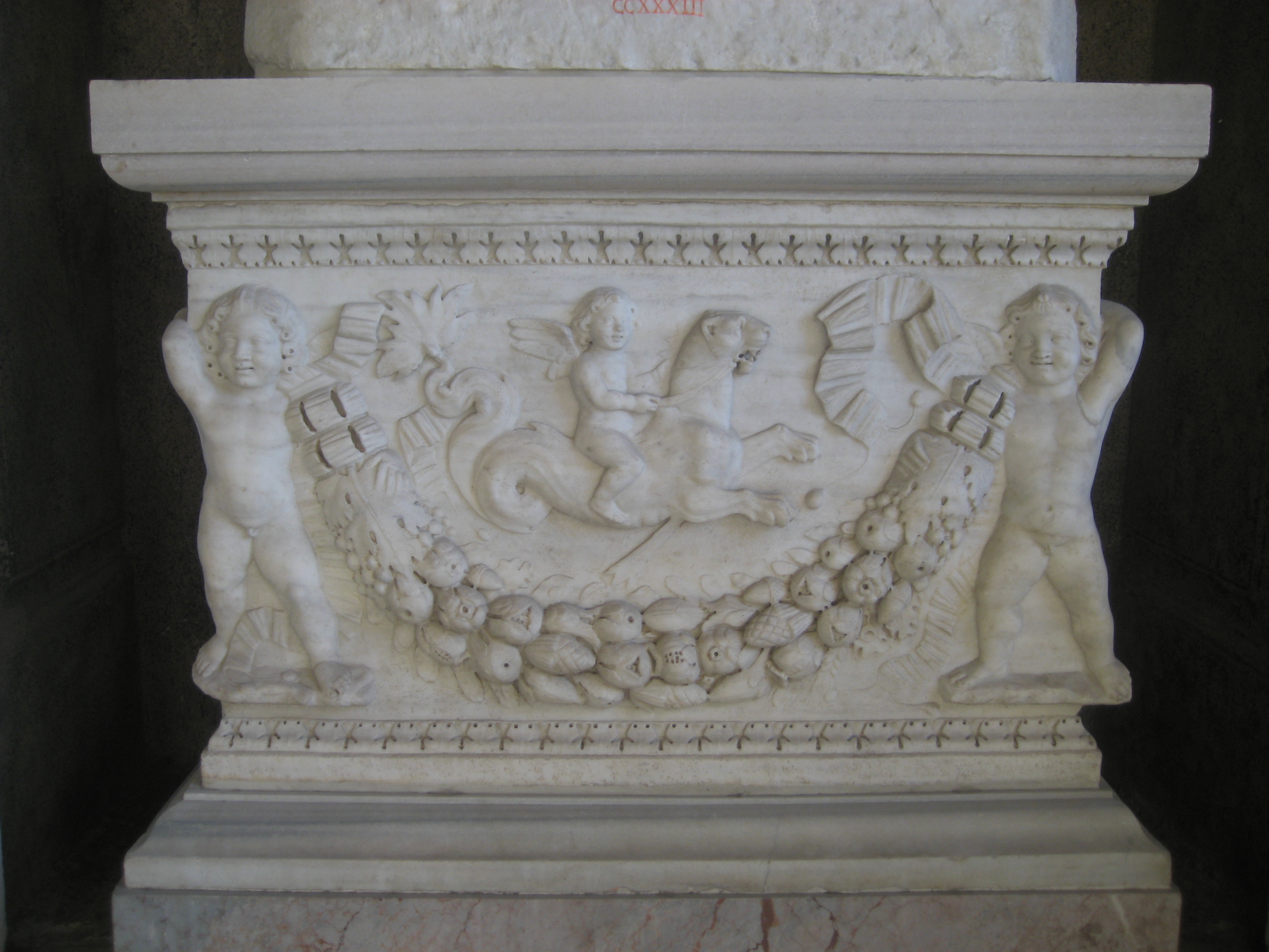 lastra di sarcofago - Sarcofago a festoni con eroti e motivi marini, sezione 2008 Inventario CCXXXIIIa vedi scheda opera vedi le foto di restauro in sequenza di quest'opera |